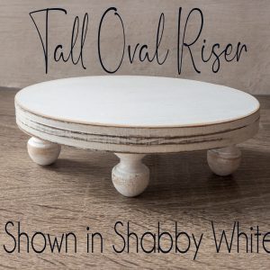 Our risers are intended for indoor use only, and should be cleaned with a slightly damp cloth only. The dimensions for the tall oval riser are approximately 1&3/4″ tall, 5&1/4″ long and 3&1/2″ wide. The short oval riser measures approximately 1&1/4″ tall, 5&1/4″ long and 3&1/2″ wide.