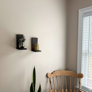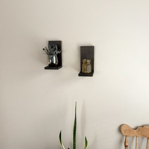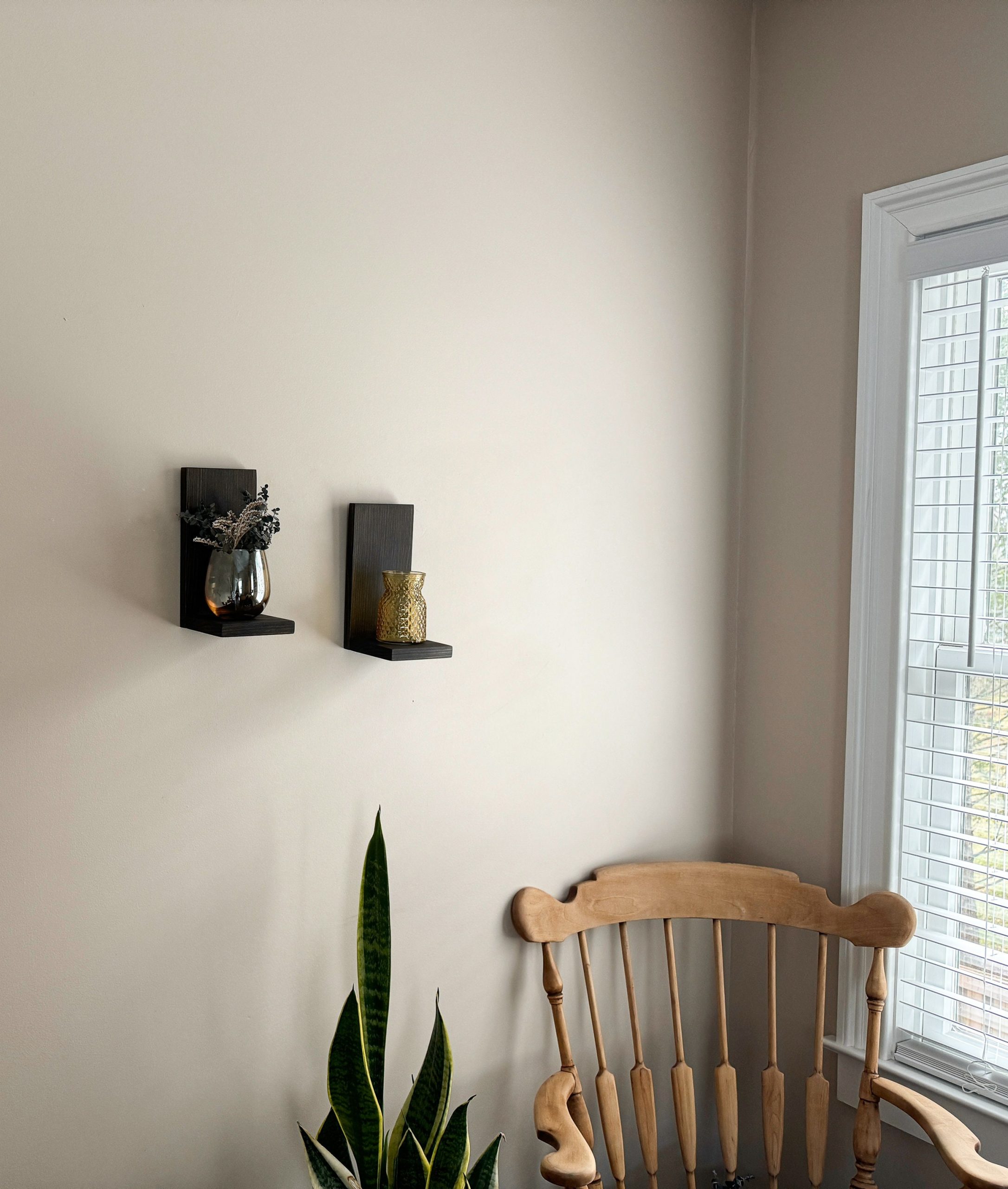 Small wood wall hanging with shelf for plants or decor. Sawtooth hanger on the back (screws/nails not included). Pictured in Early American stain (photos 1-3) and Jacobean stain (video and photos 4-6).