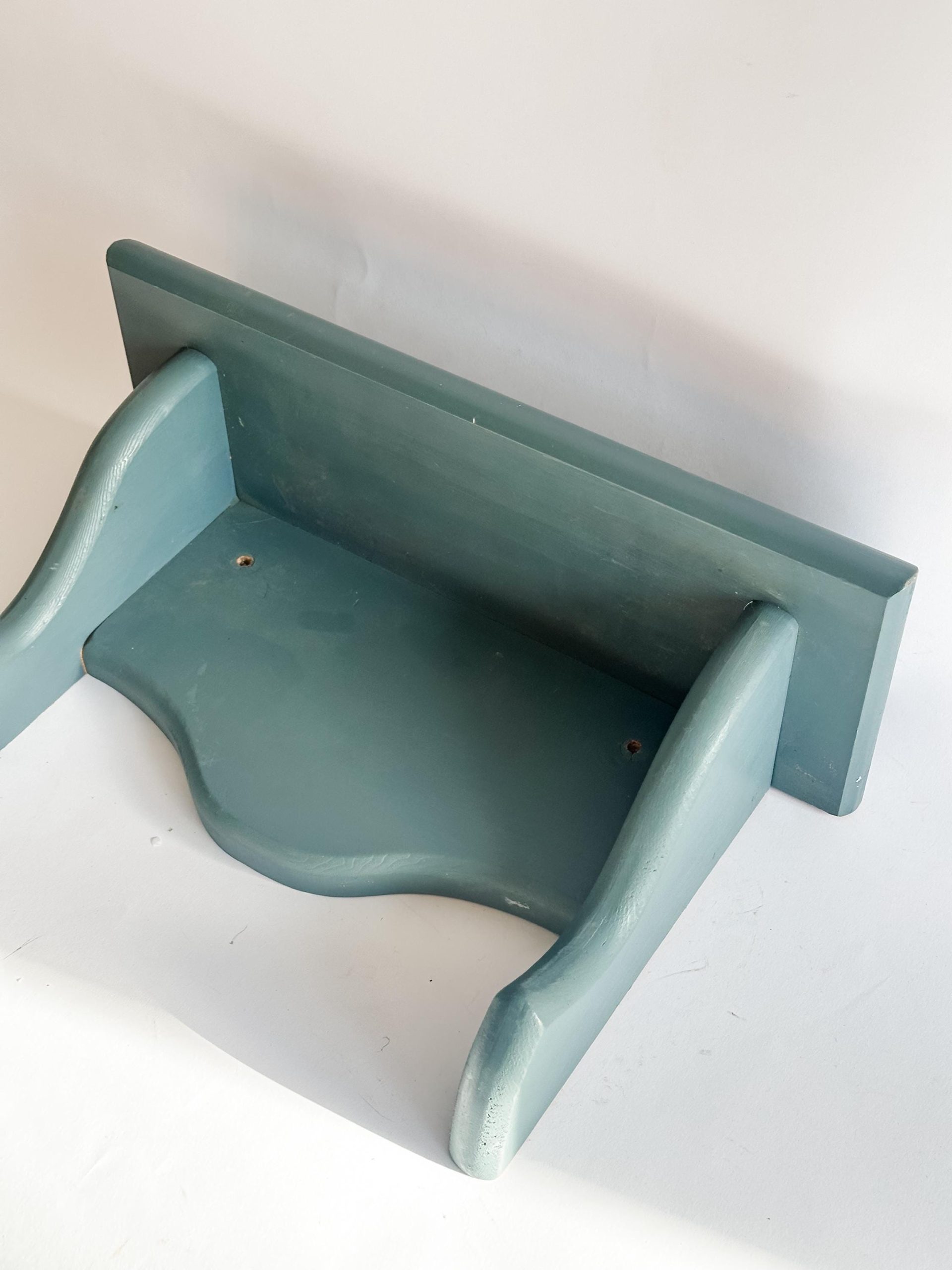 Vintage Teal Wood Wall Shelf | Small Cottage Shelf | Farmhouse Wall Decor | Painted Wooden Shelf | 1980s Home Decor