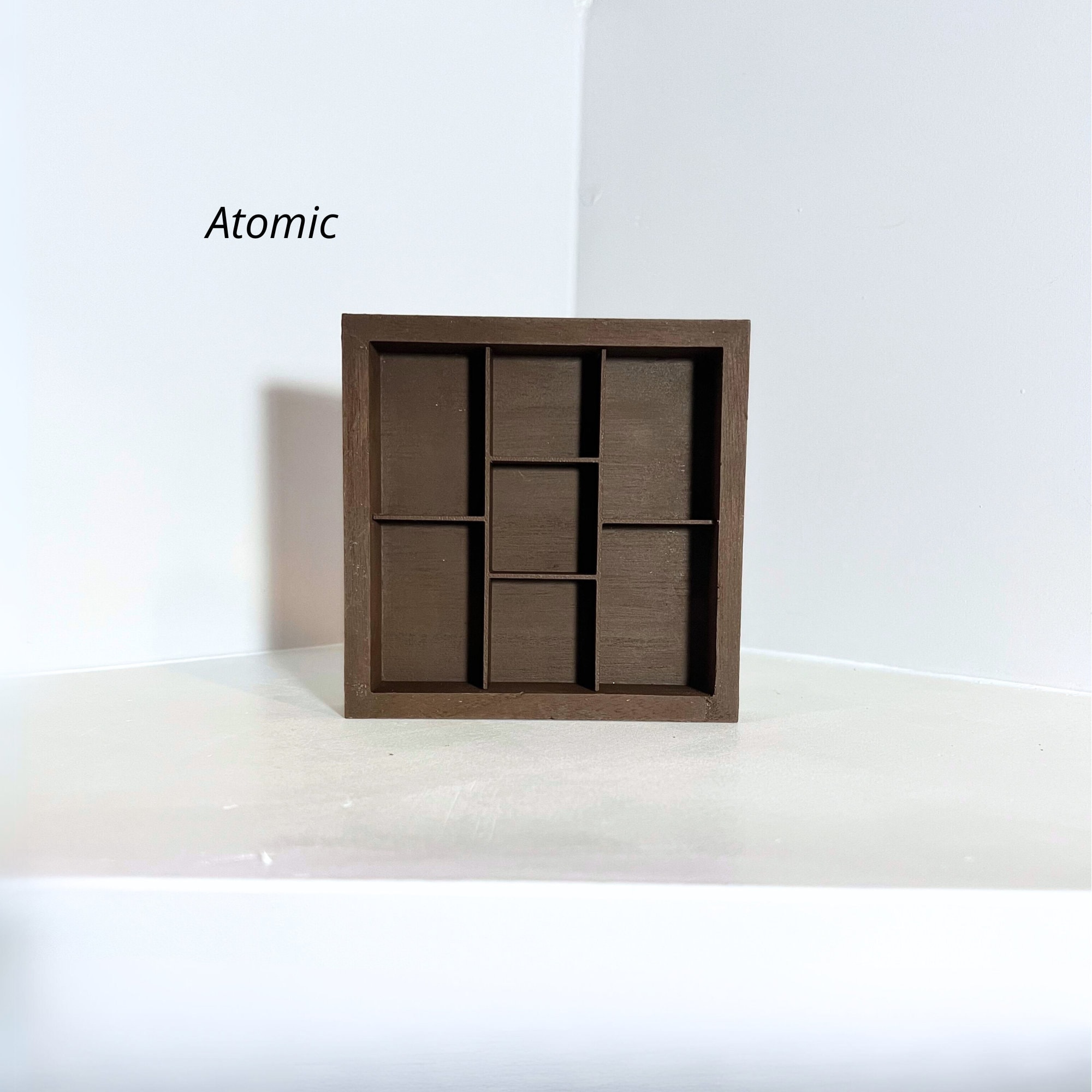 | Style | Atomic- 5”x5”x1”, Beehive- 5”x5”x1”, Cosmo- 5”x5”x1”, ALL!- 5”x5”x1” |
